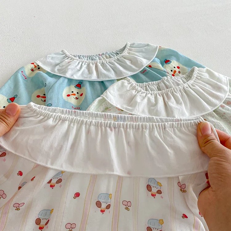 [66-140cm]ワンピース OR ロンパースレース襟リボン柄 可愛い