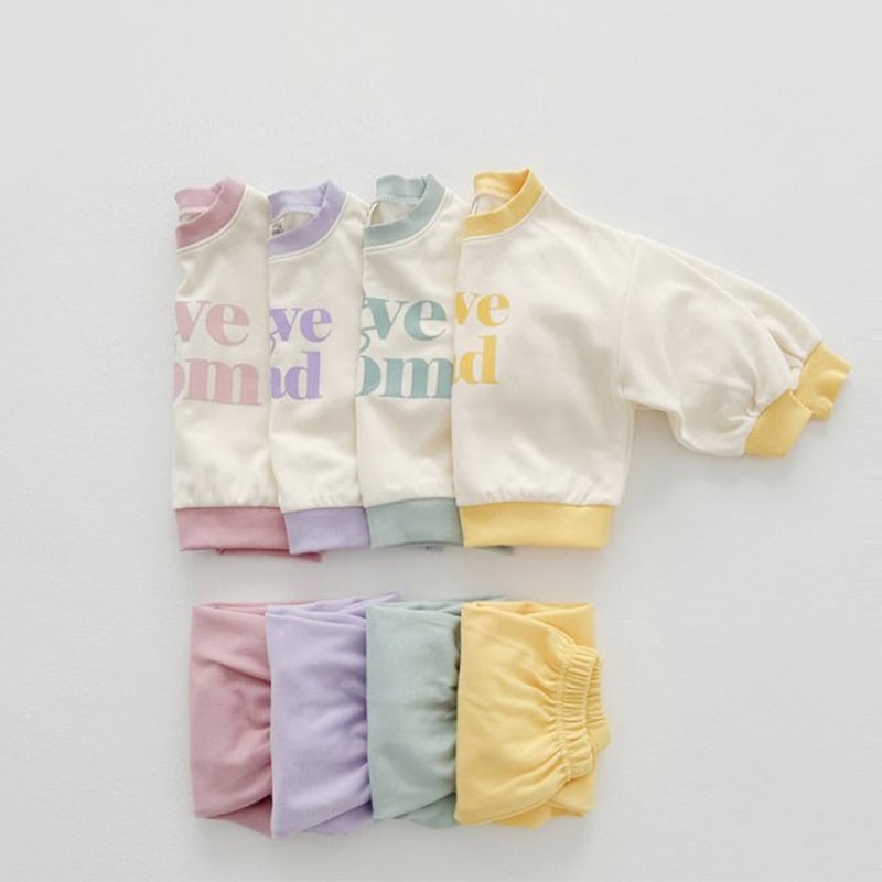 [80-130cm]セットアップ 笑顔柄 英字プリント 二点セット