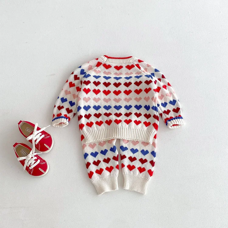 [80-130cm]ハート柄 ニット トップス or ボトムス