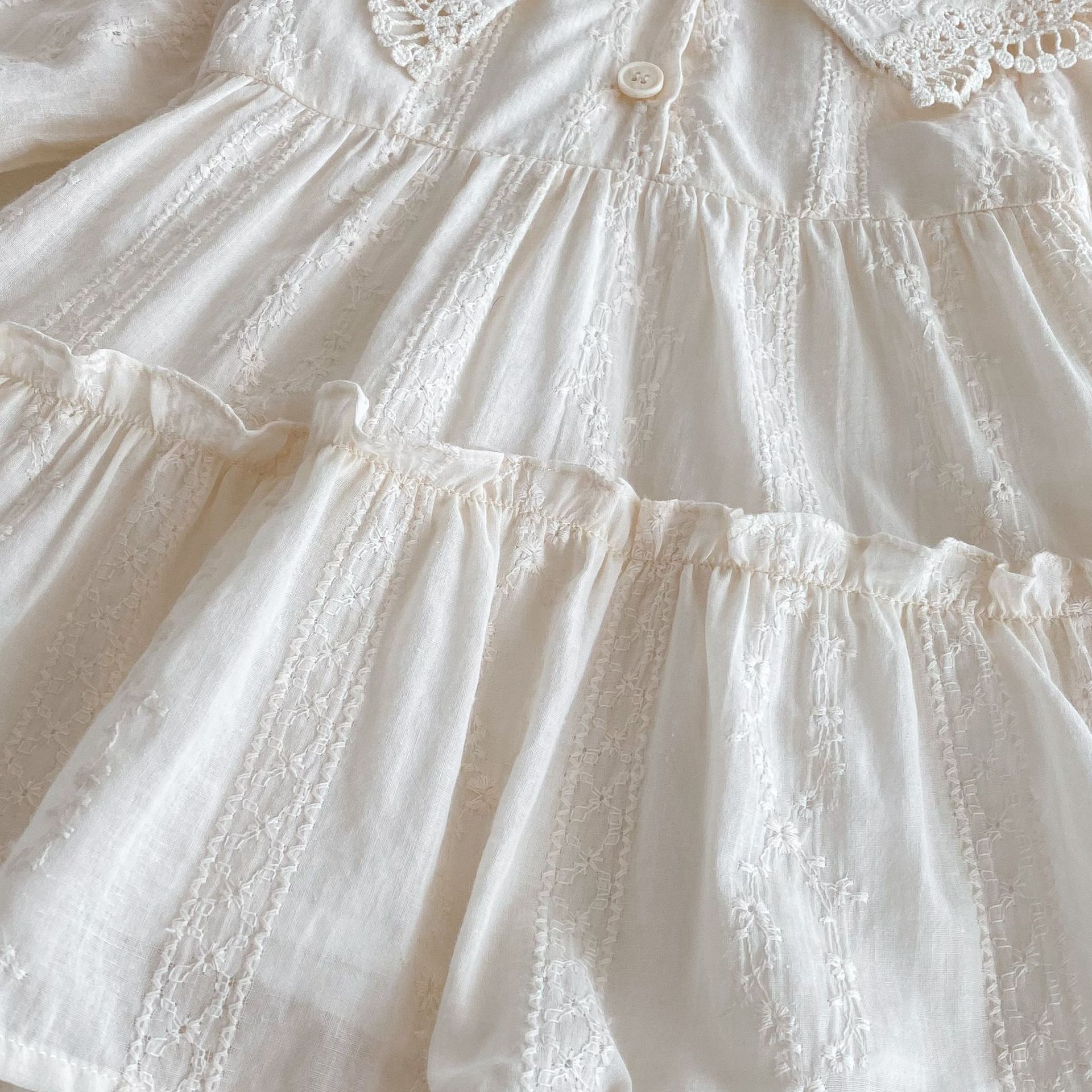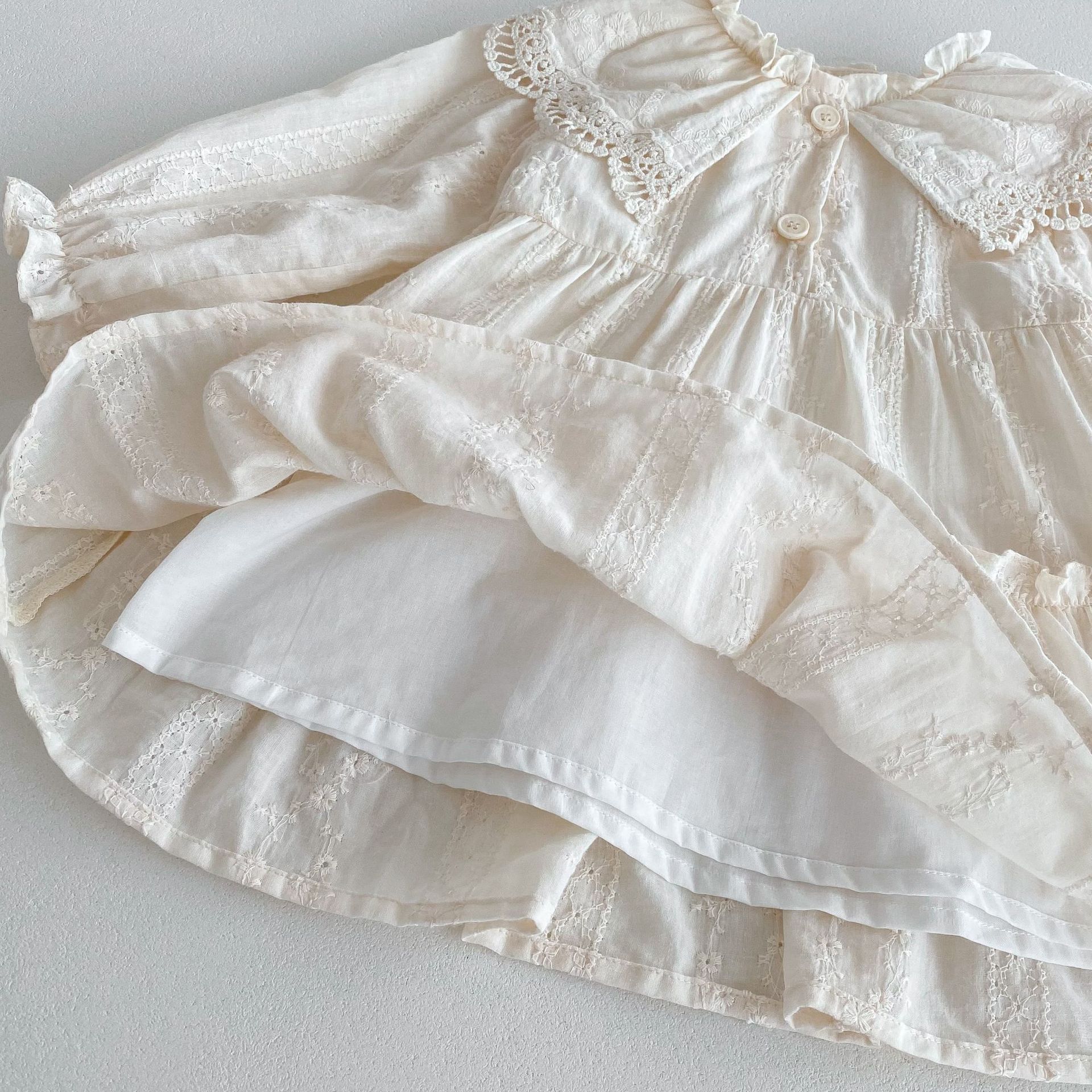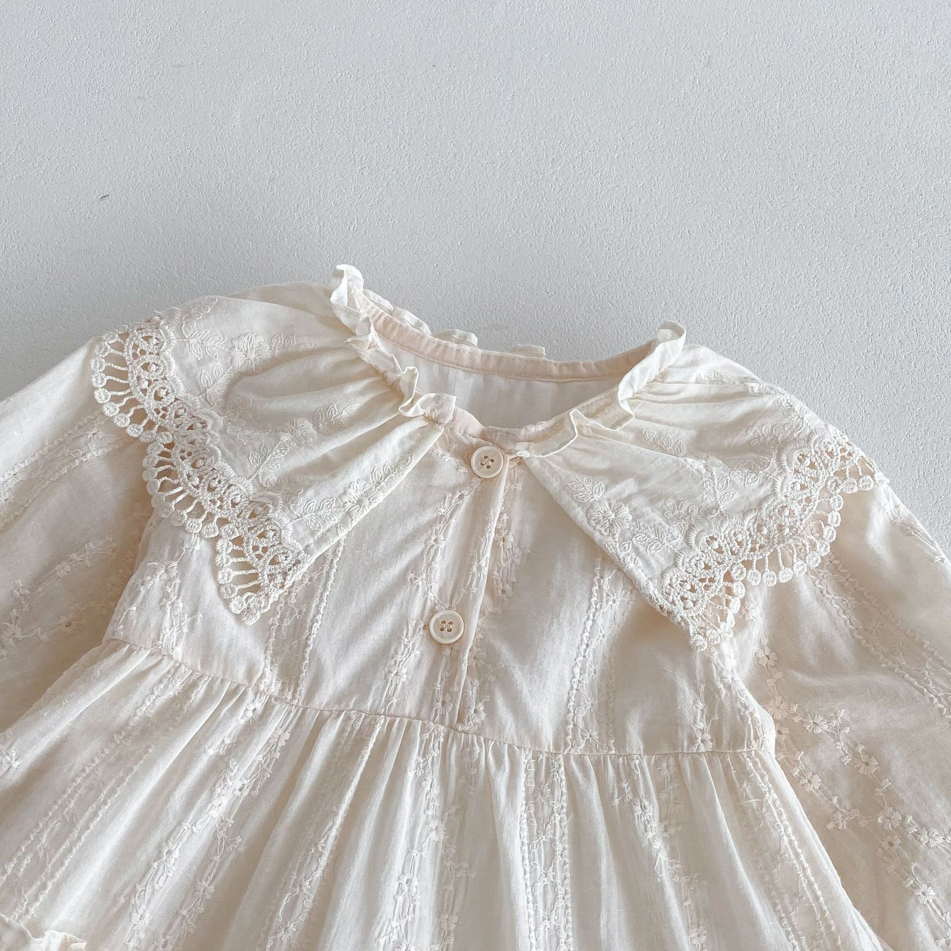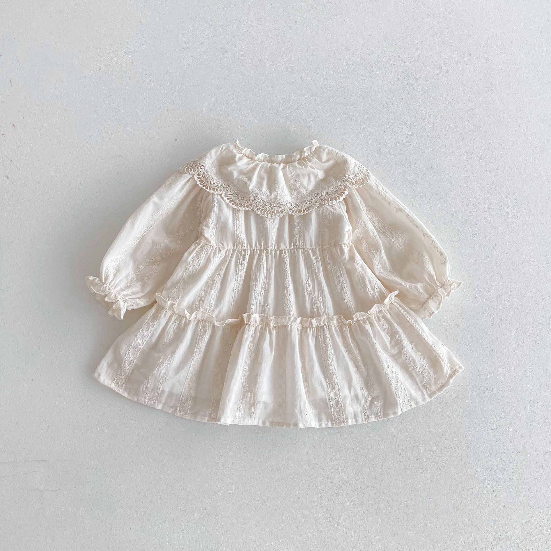 [80-130cm]長袖 ワンピース 女の子 おしゃれ レース襟