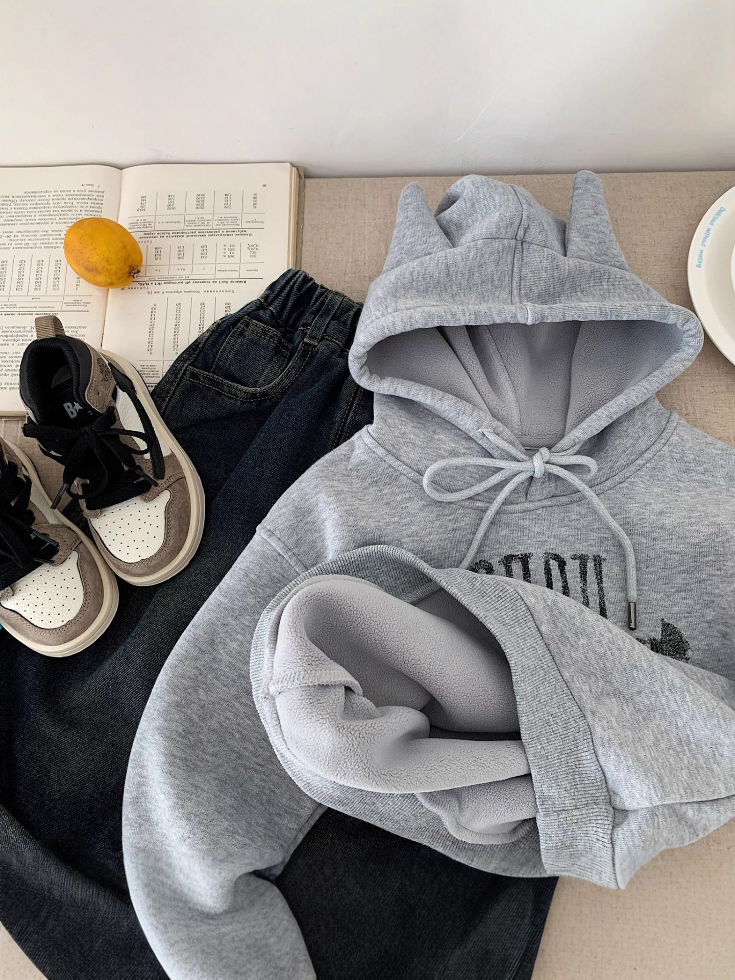 [80-130cm] カジュアル 裏起毛 フード付き パーカー