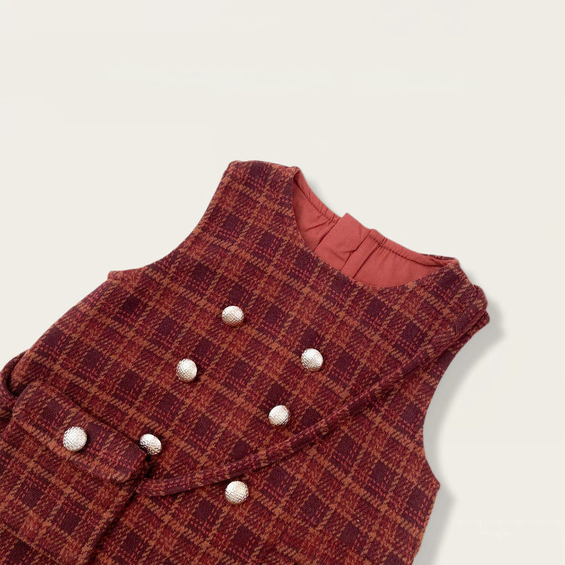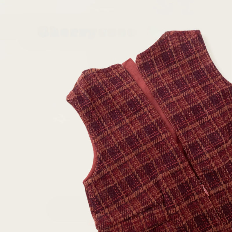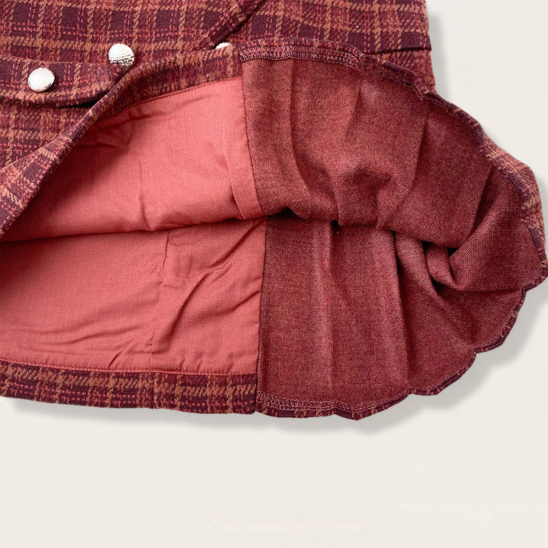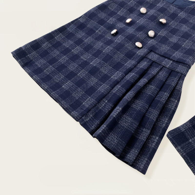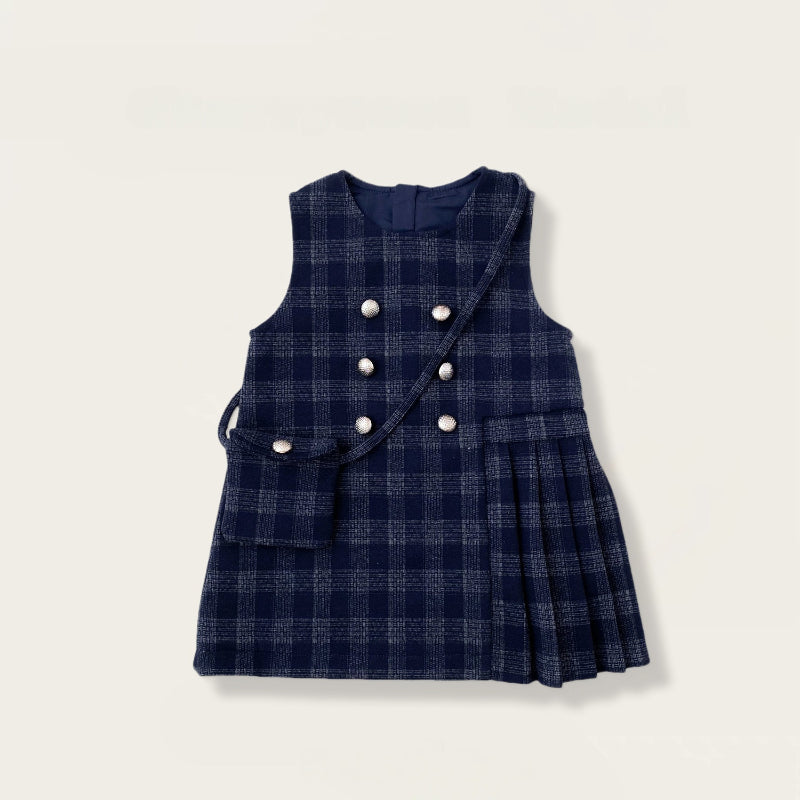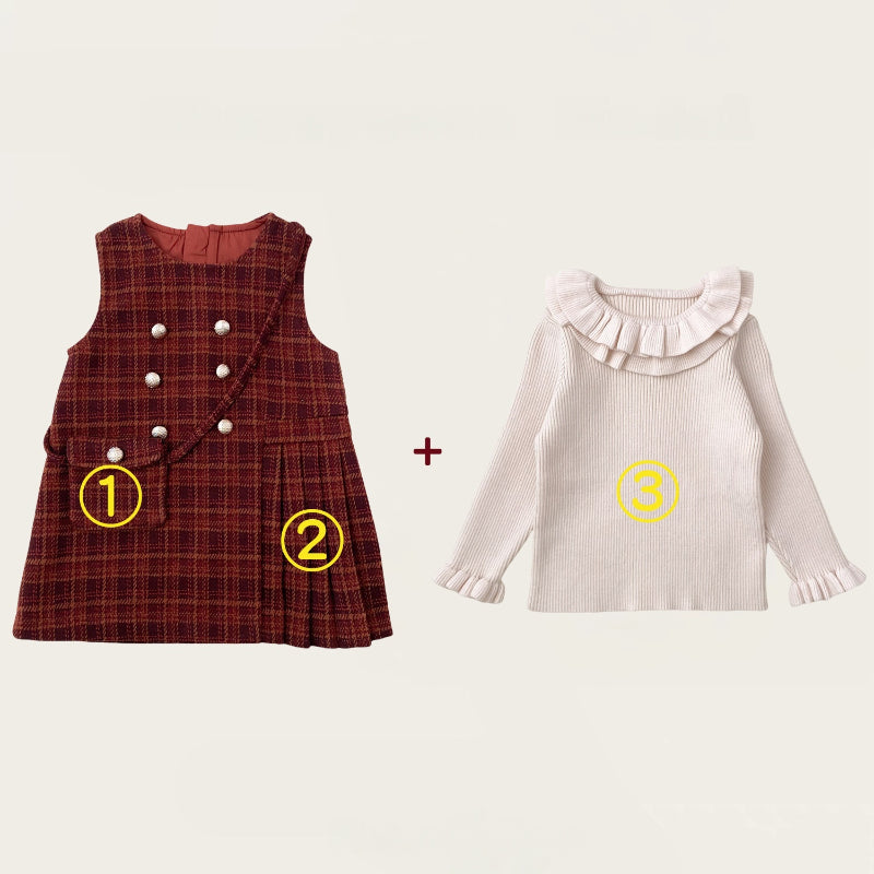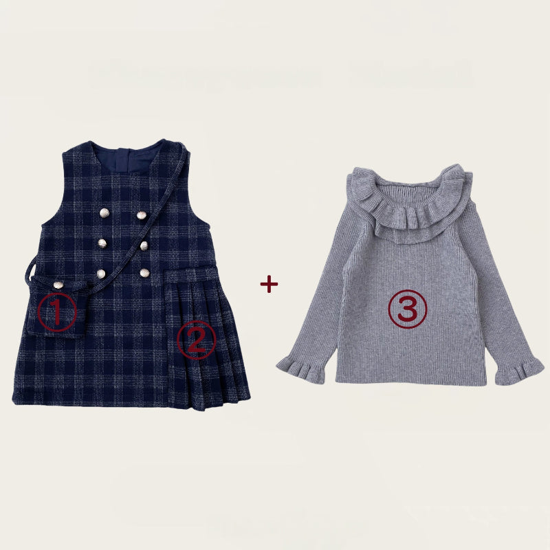 [80-140cm] チェックジャンパースカート&フリルニット&バッグ3点セット