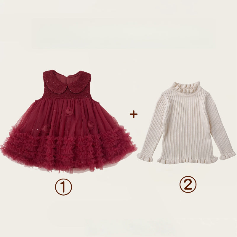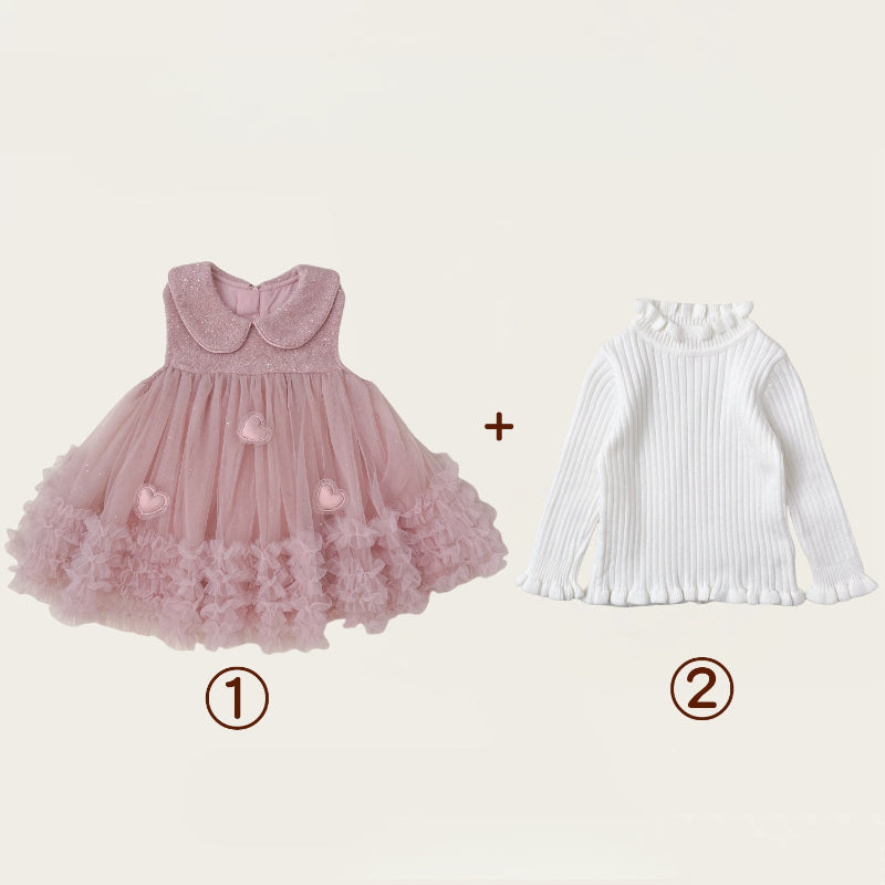 [80-140cm] 立体ハートチュールワンピース&ニットセーター