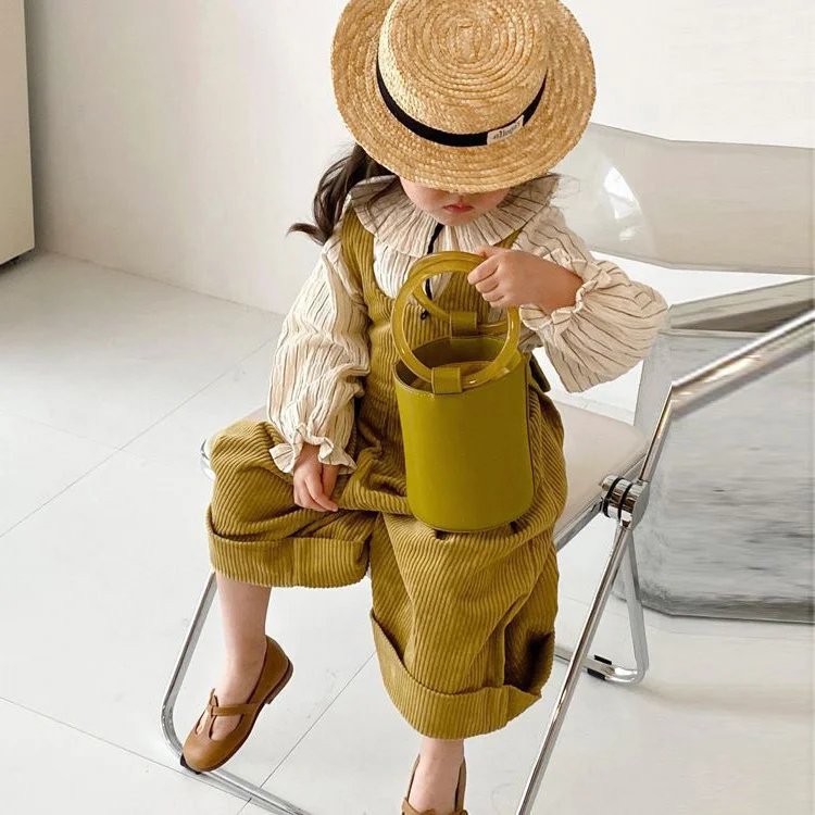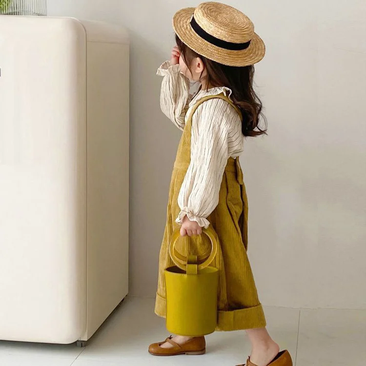 [66-100cm]サロペット ロンパース コーデュロイ リボン シンプル
