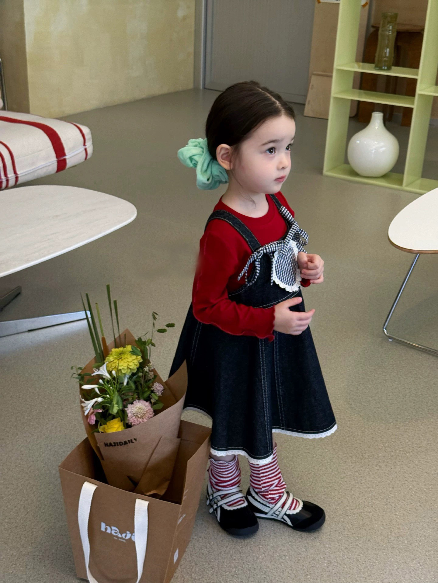 [90-140cm]大注目 スウィート トップス/デニムワンピース