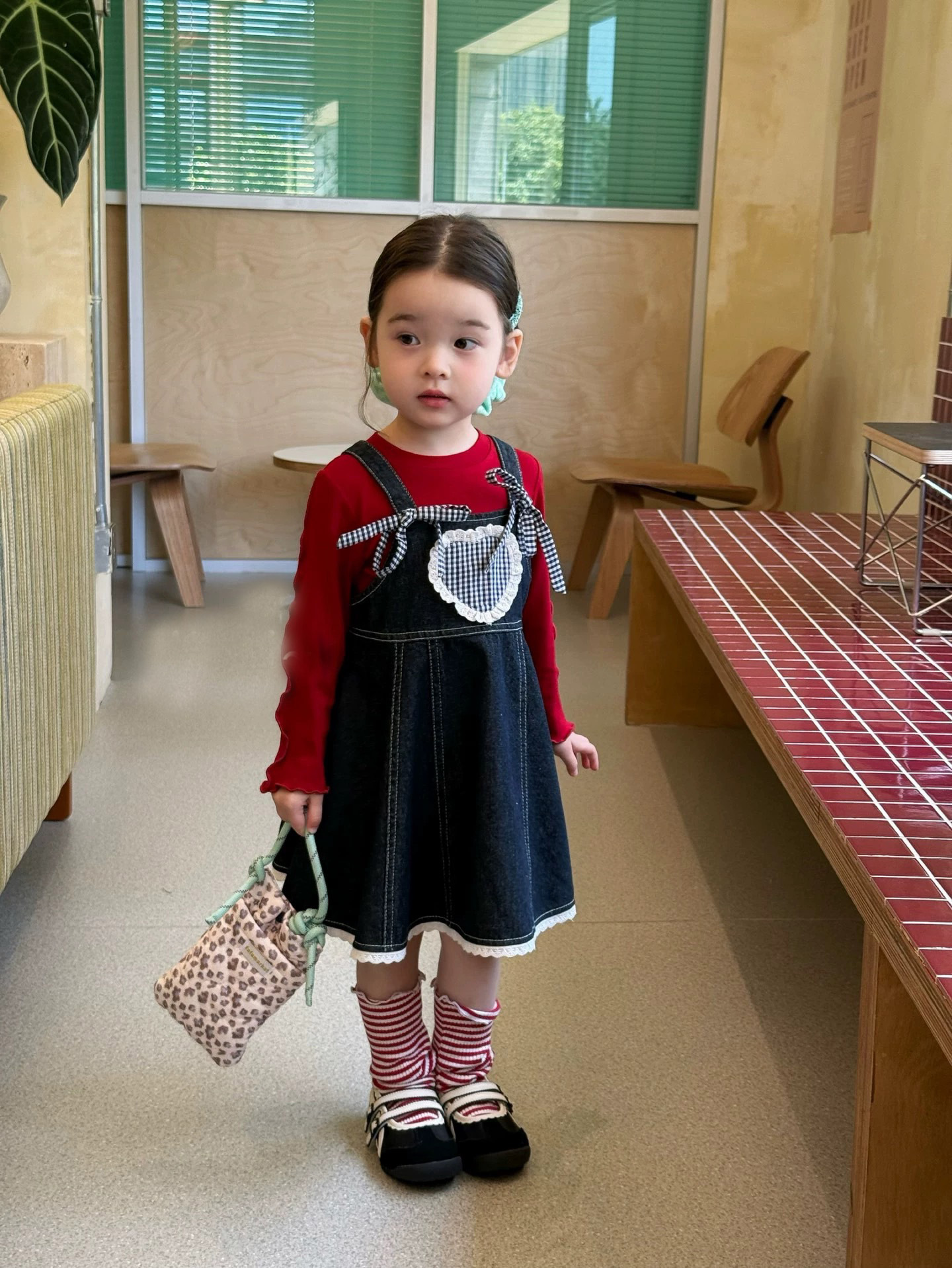 [73-100cm]サロペット OR ボーダー シャツ ハート柄 カジュアル