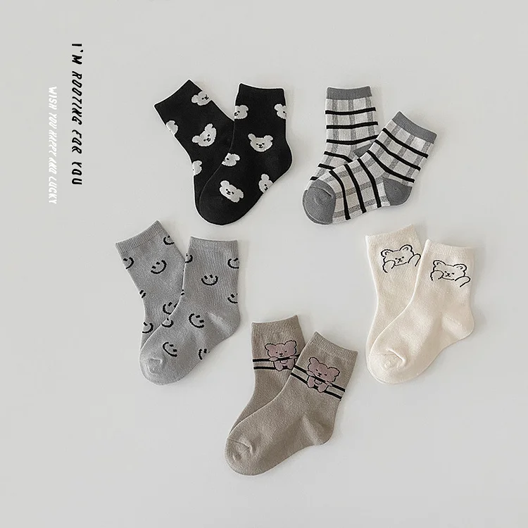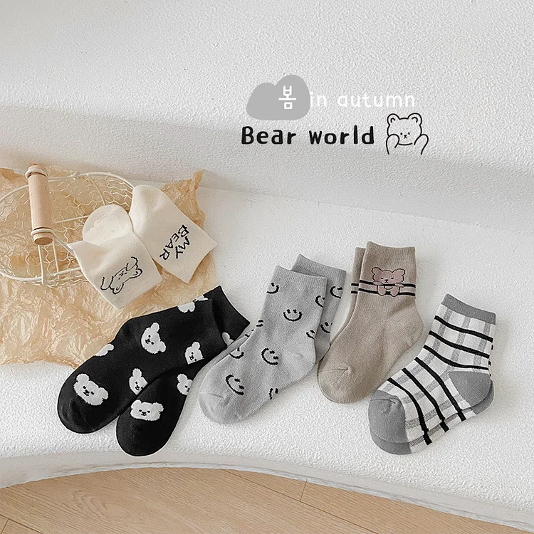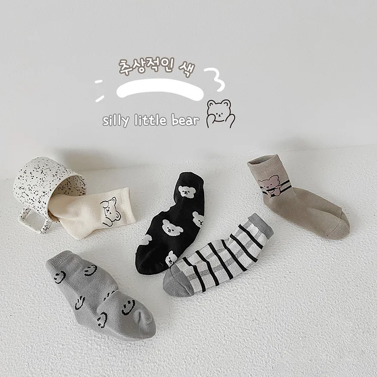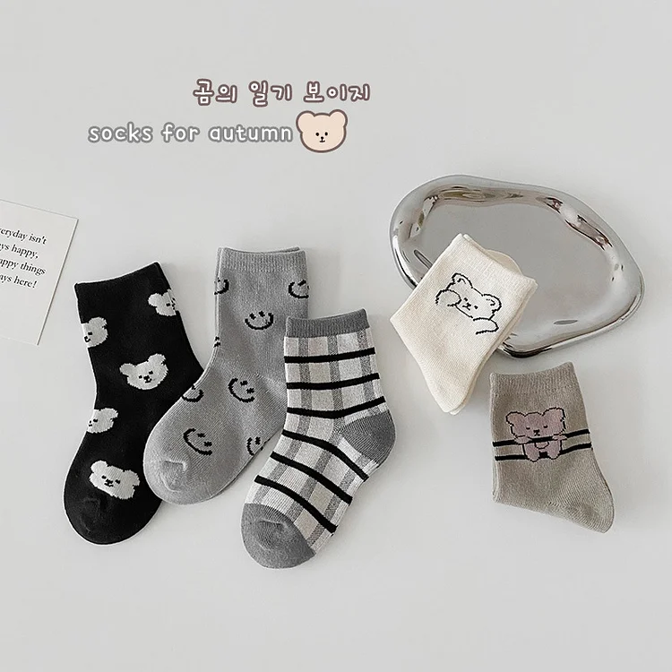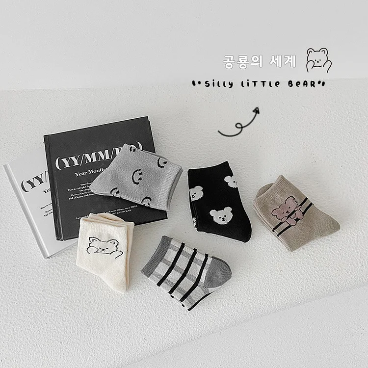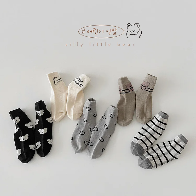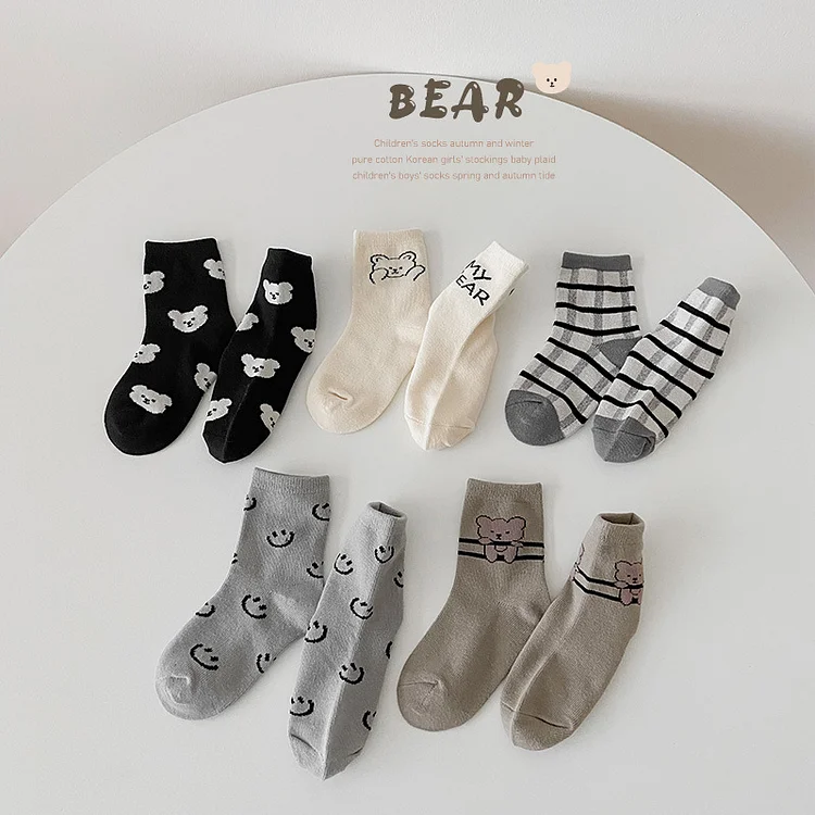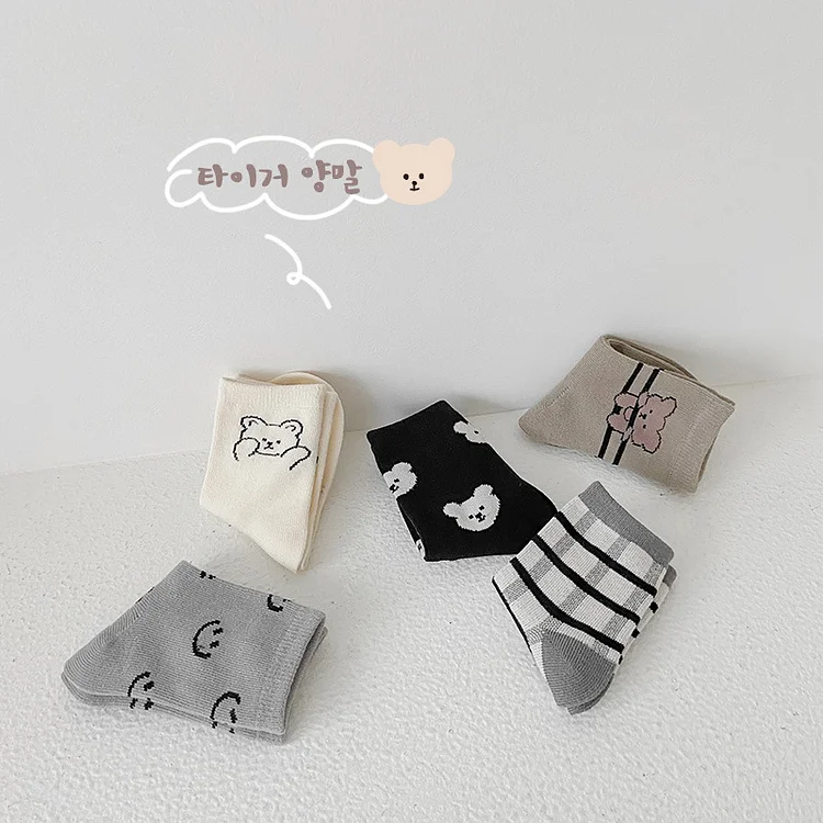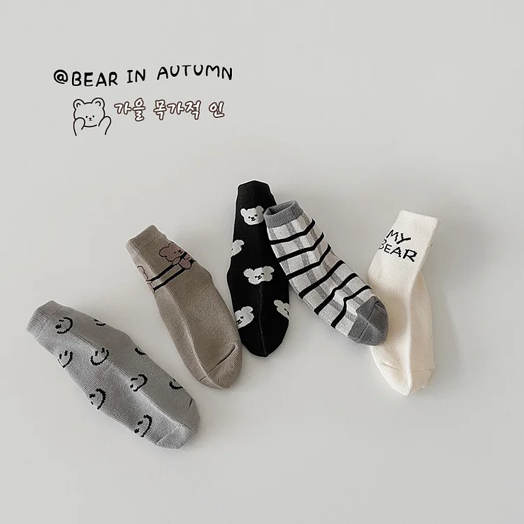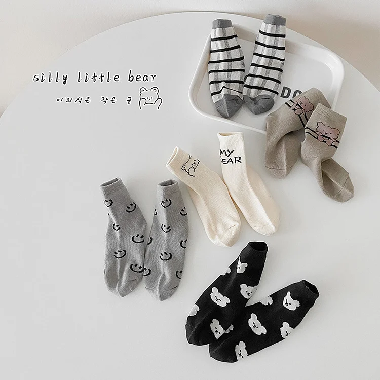 [GOODS]レトロスマイル 熊柄 ソックス 5足セット