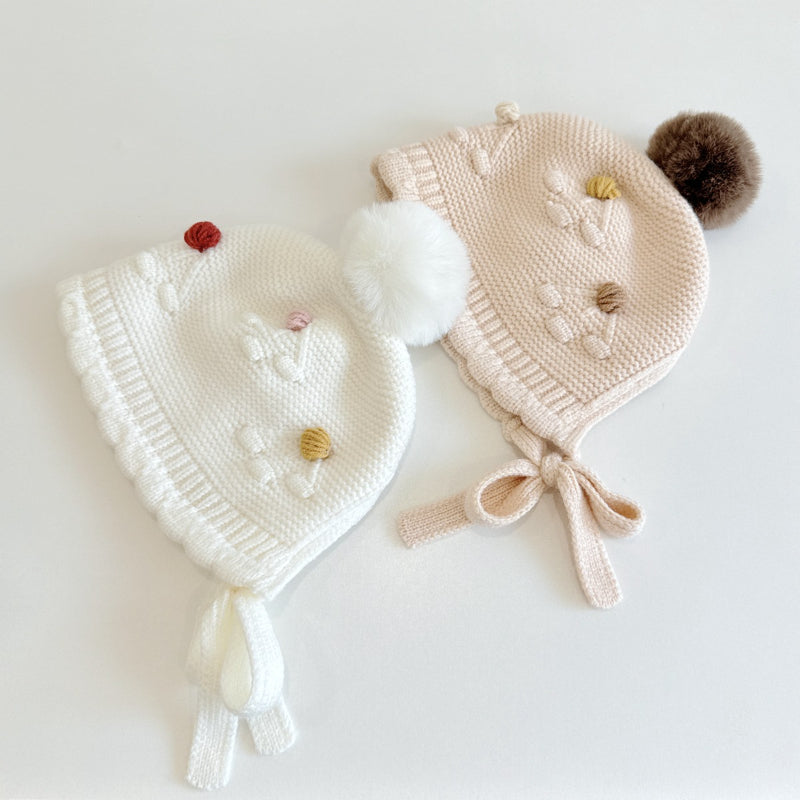 [GOODS]波型 ポンポン ニット 帽子