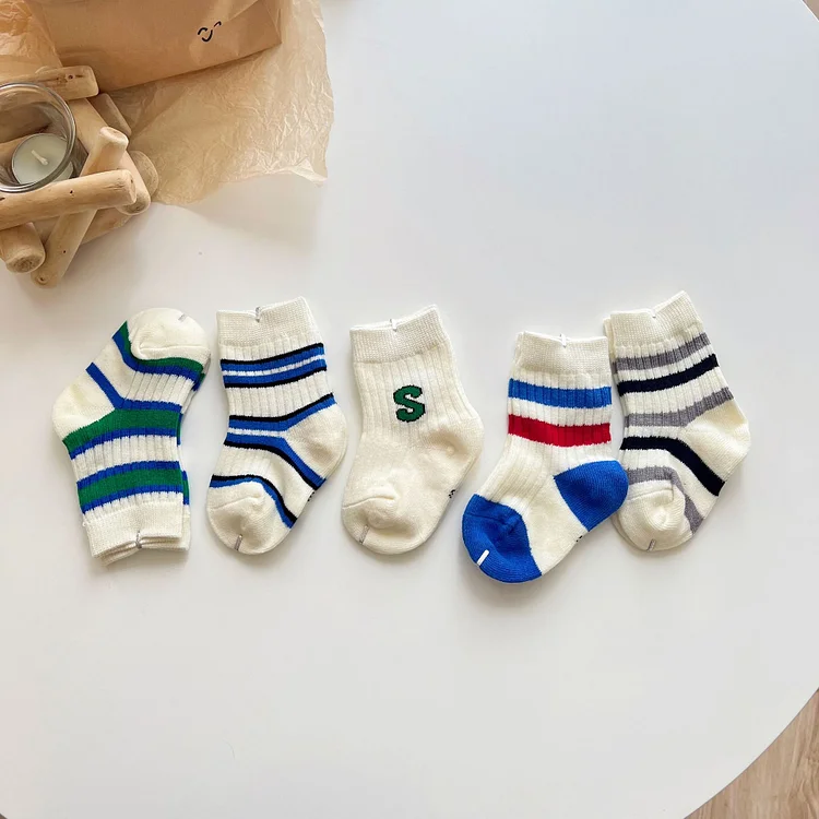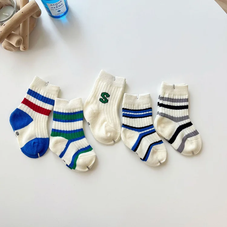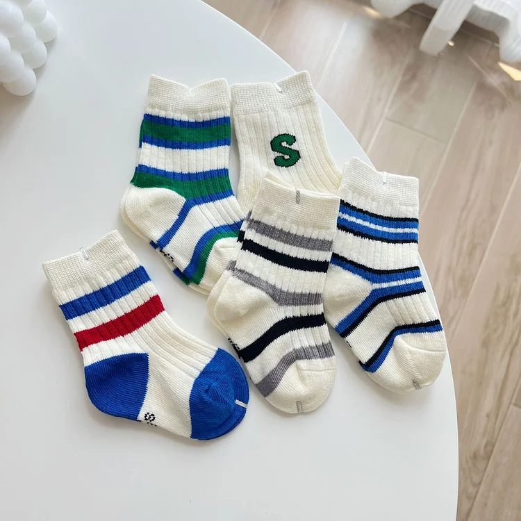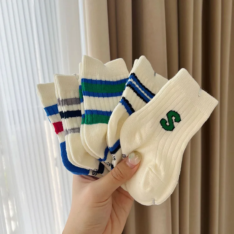 [GOODS] 韓国風 英字ボーダー ソックス 5点セット