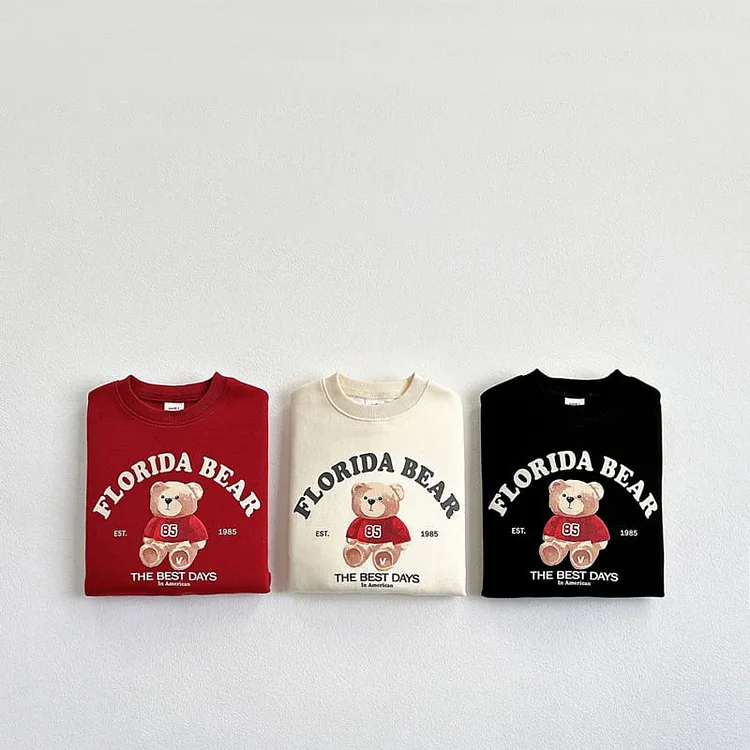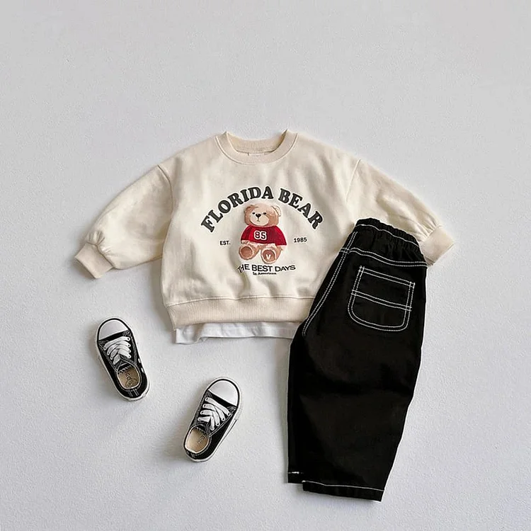 [80-130cm] クマ 英字 プルオーバー トレーナー
