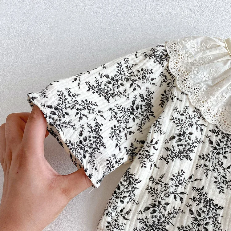 [1-18M] ローズ柄 ロンパース