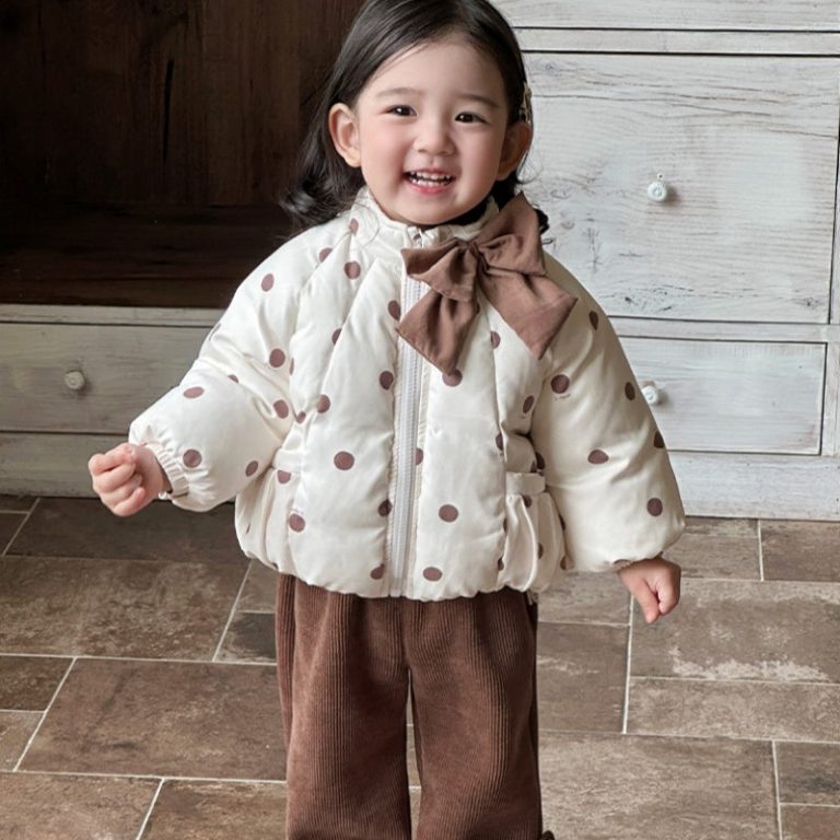 [73-100cm] 韓国風 ドット 蝶結び アウター