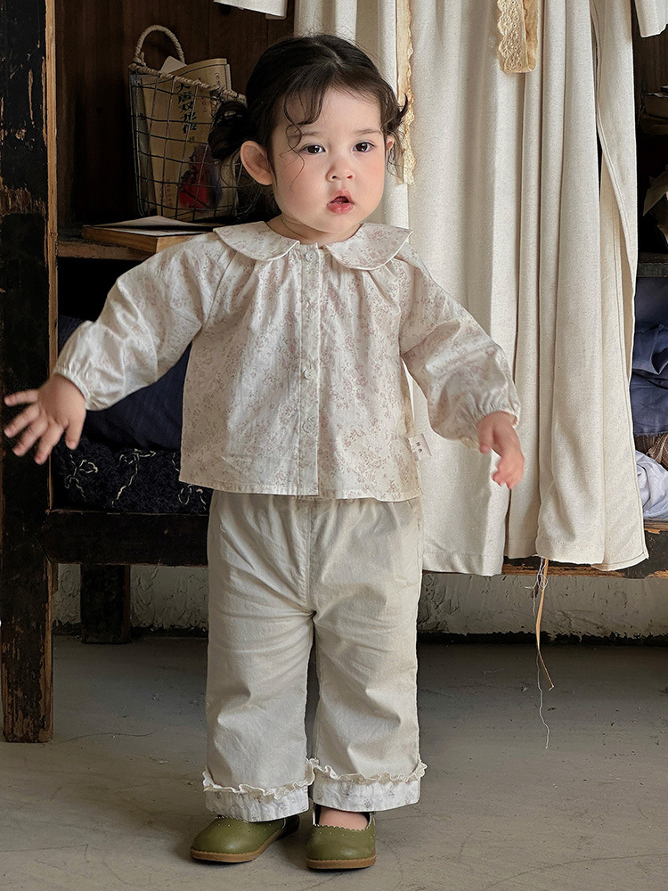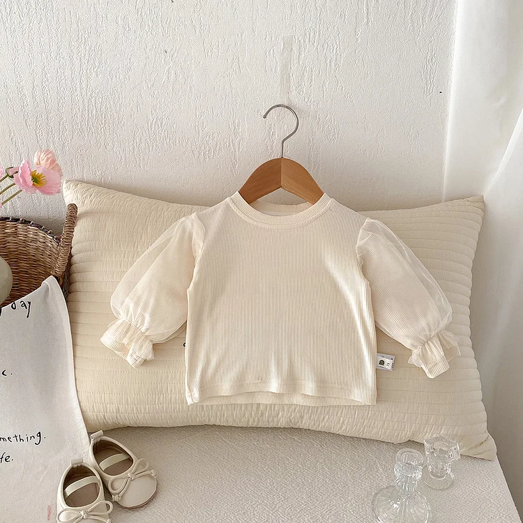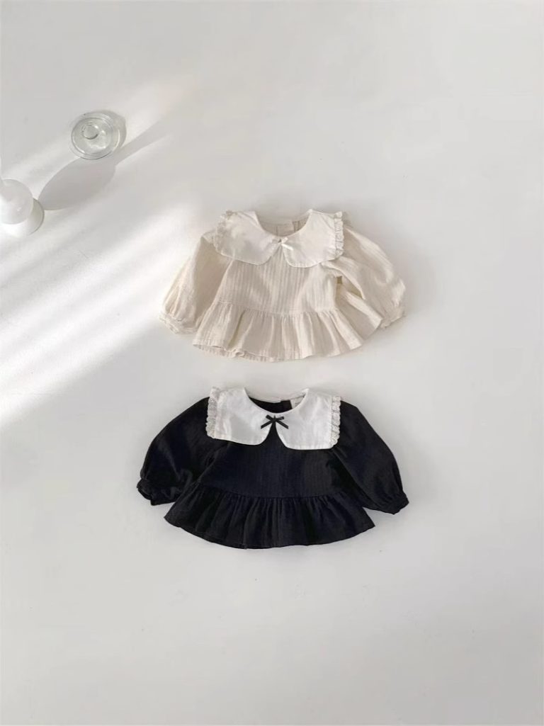 [73-100cm]かわいい フリル襟 パフスリーブ 長袖シャツ