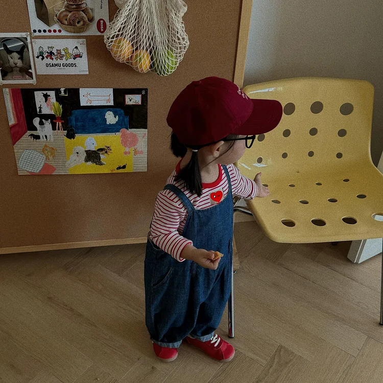 [73-100cm]サロペット OR ボーダー シャツ ハート柄 カジュアル
