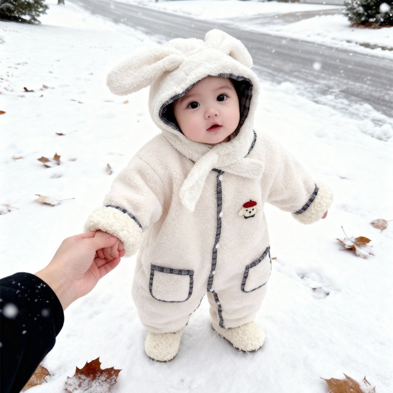 [66-100cm] キルティング あったか カバーオール&マフラー