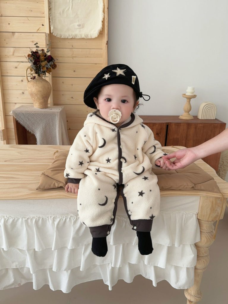 [66-100cm] 星と月柄 あったか カバーオール