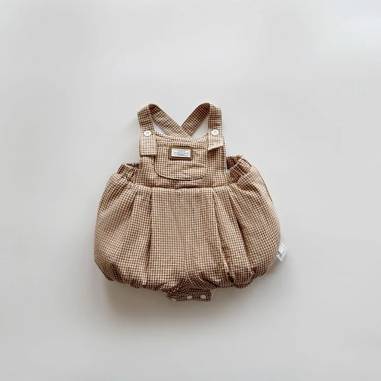 [66-100cm] チェック柄 ロンパース